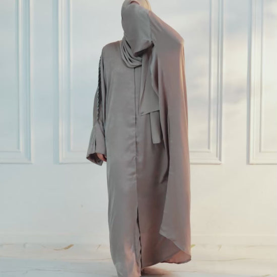 Grace meets craftsmanship in the Al Seef Grey. Made from handpicked Korean Velvet and adorned with delicate embroidery, this full set with magnet and logo is perfect for modest sophistication day or night.